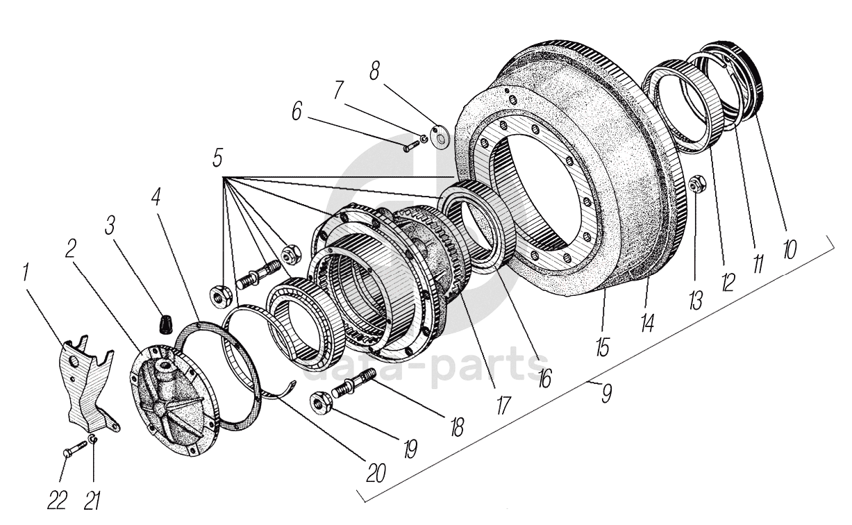 Ступица колеса и тормозной барабан заднего моста (с АБС) УРАЛ-4320-61