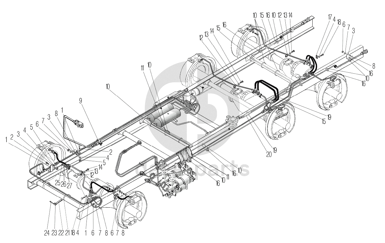 Крепление трубопроводов и шлангов пневмогидравлического привода рабочих тормозов