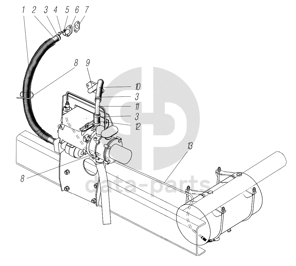 Трубопроводы и шланги системы предпускового подогрева двигателя Вариант 2