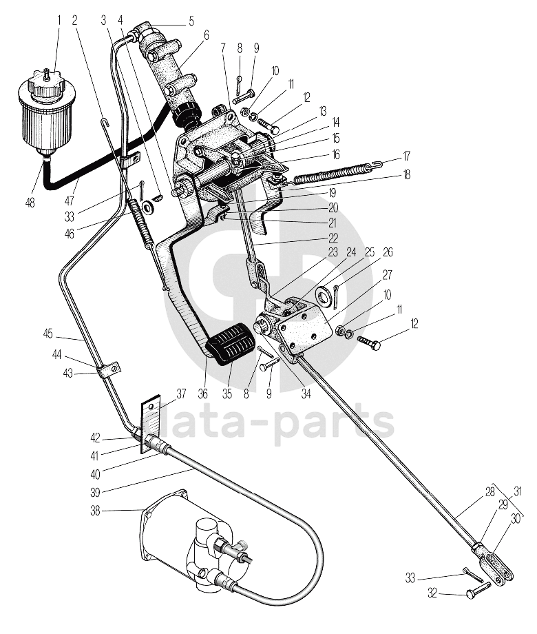 Привод педалей сцепления и тормоза УРАЛ-4320-1958-70И