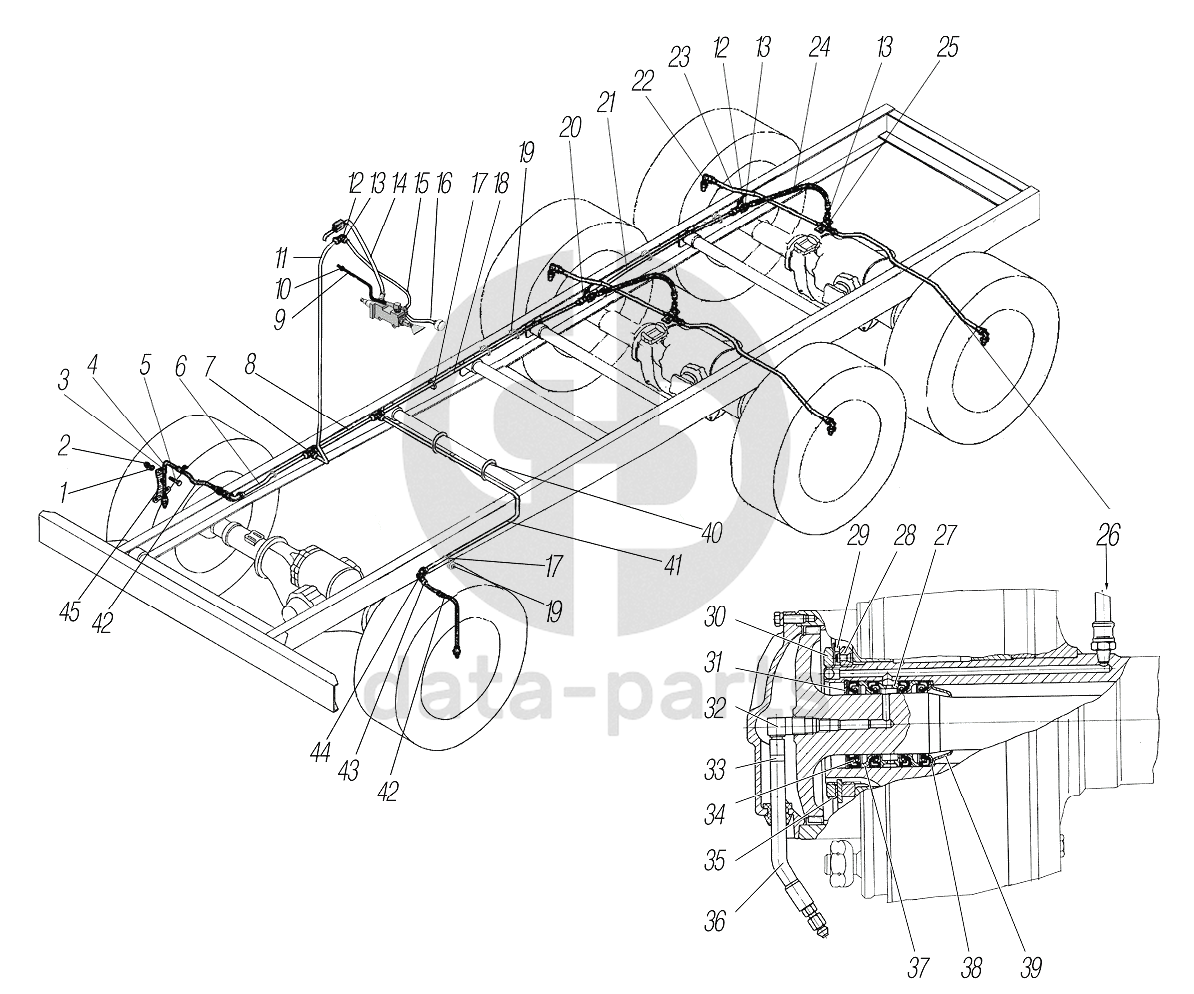 Система регулирования давления воздуха в шинах УРАЛ-4320-1958-70И