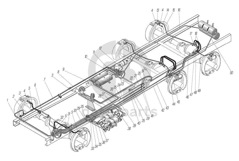 Трубопроводы и шланги пневмогидравлического привода рабочих тормозов УРАЛ-44202-3511-80