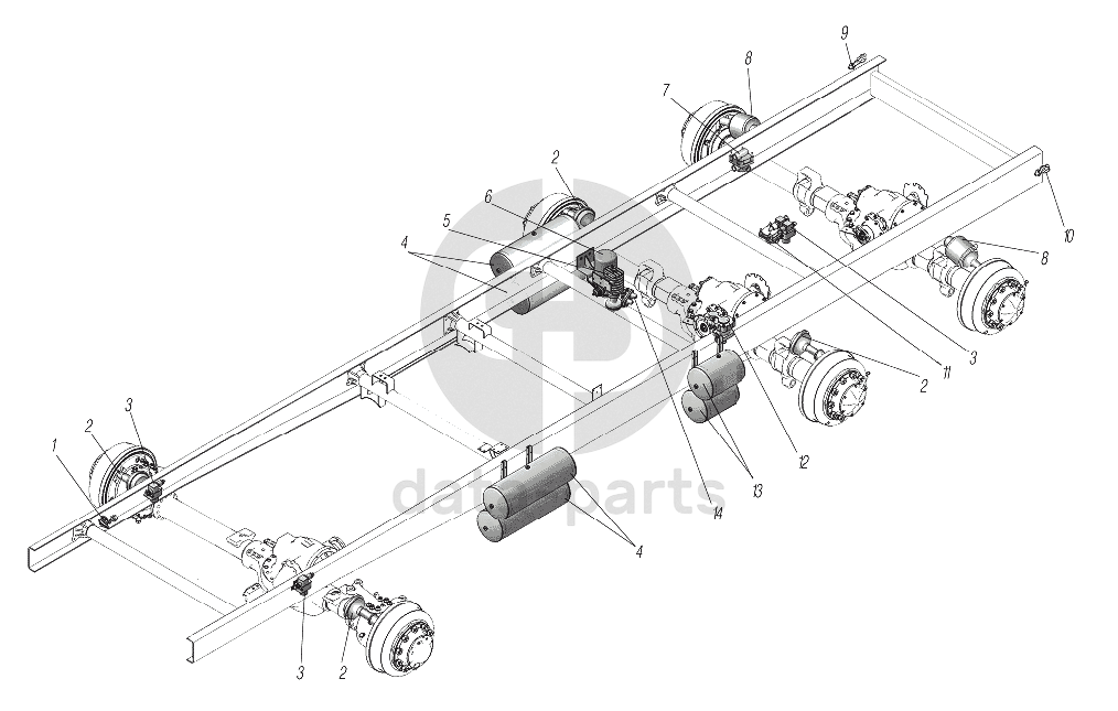 Установка агрегатов пневматического привода рабочих тормозов УРАЛ-4320-6951-74