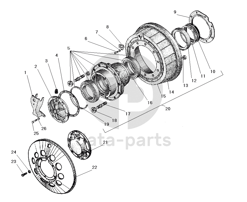 Ступица колеса и тормозной барабан среднего моста (устанавливается на все мосты без АБС)