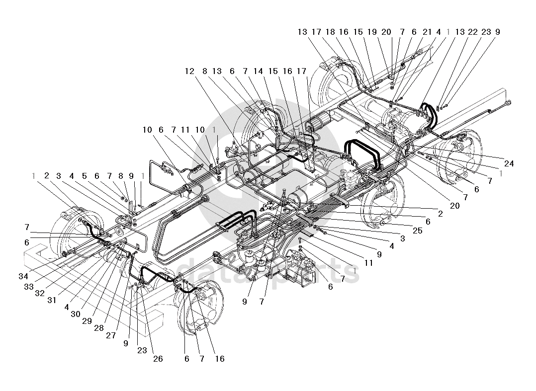 Крепление трубопроводов и шлангов пневмогидравлического привода рабочих тормозов