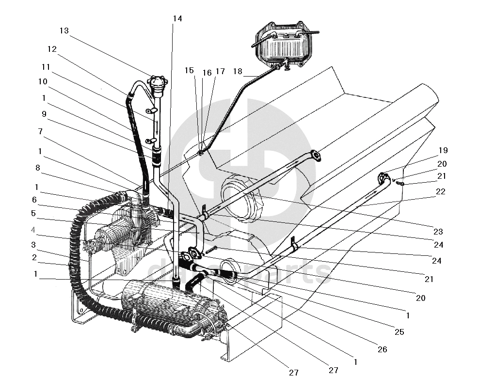 Трубы и шланги системы предпускового подогрева
