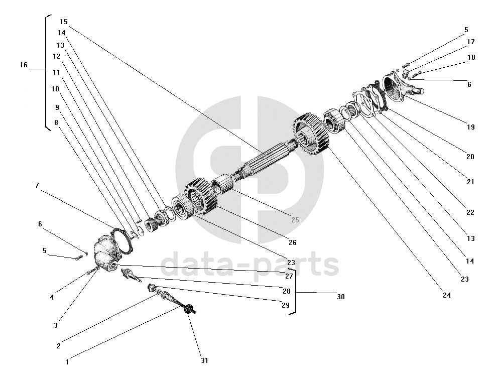 Крышка заднего подшипника промежуточного вала с осью рычага ручного тормоза в сборе