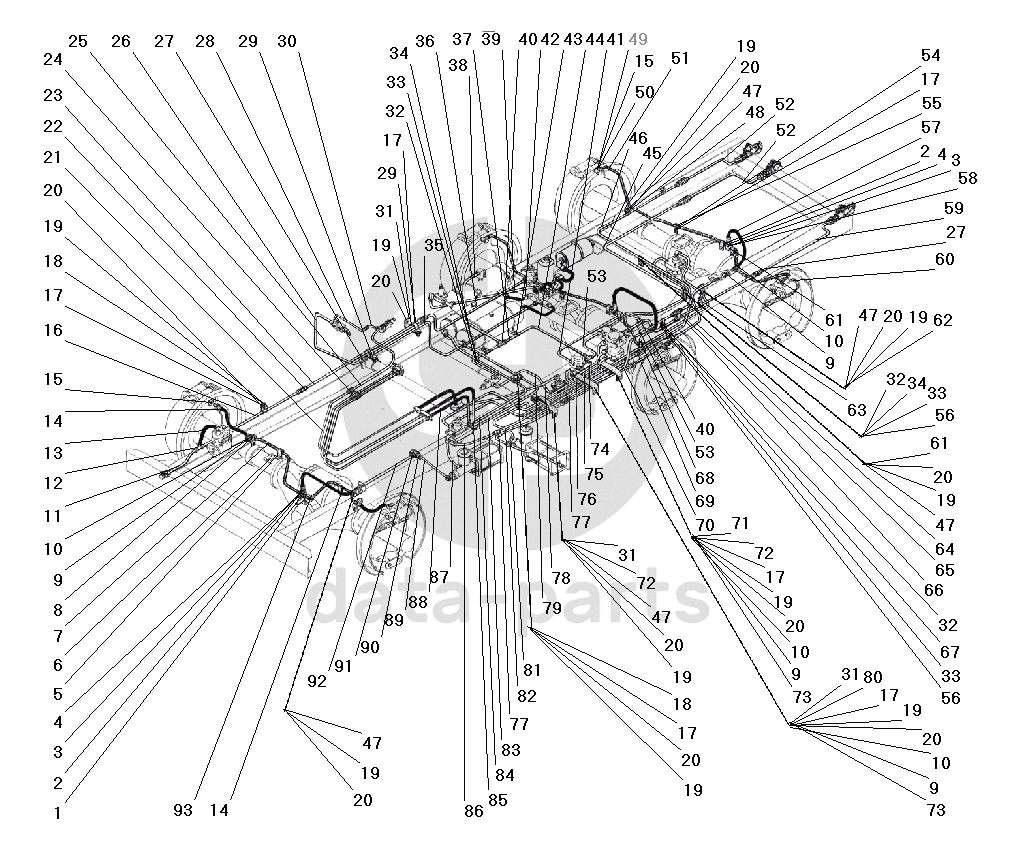 Трубопроводы и шланги гидропневматического привода рабочих тормозов