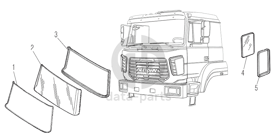 Стекло кабины боковое малое (Урал-Безкапотник, кабина без спального места)