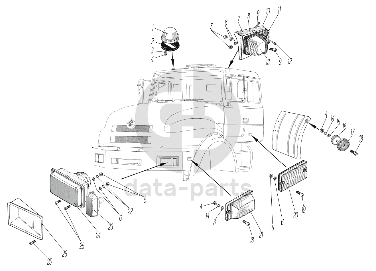 Установка фар, фонарей знака автопоезда, габаритных и указателей поворота УРАЛ-4320-0971-58