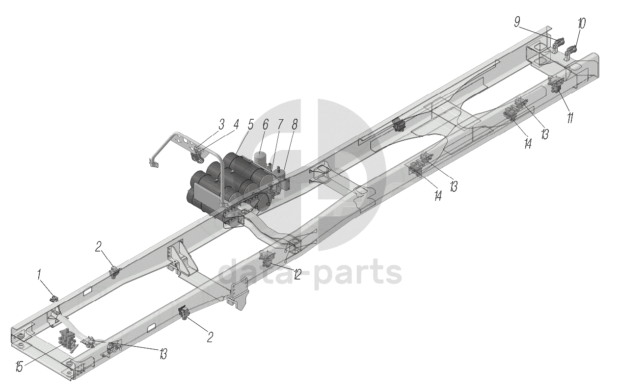 Установка агрегатов пневматического привода рабочих тормозов УРАЛ-6370-1121